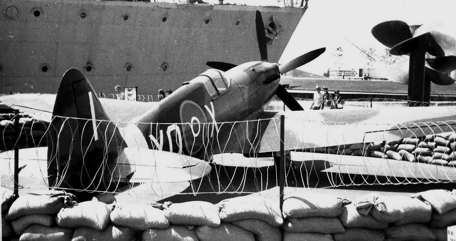 The aircraft were transported to Torbay on 26 Dec 1942. The Spitfire’s bent propeller was straightened, and parts of the other two damaged Spitfires (Serial Nos. ES117) and (Serial No. ES881), were used to restore (Serial No. ER824), to flying condition ca 12 Feb 1943. S/L R.R. “Bob” Norris had flown Spitfires in the Battle of Britain and he agreed to test fly the aircraft. On 16 March 1943, he took ER824 up for the first of many flights. It was also flown by Lal Parsons on 19 April 1942, and F/O HA Pattinson. This aircraft had been one of a number of “Presentation Spitfires” donated by Kabala Province in Nigeria. The restoration crew named her “Miss Torbay“. The remains of the other two damaged Spitfires were buried at Torbay.