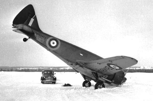 Airspeed A.S. 10 Oxford, RCAF (Serial No. 814), nose over, 22 Jan 1943.