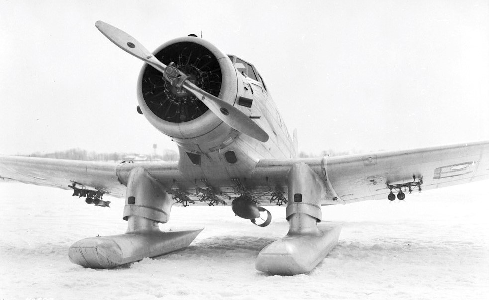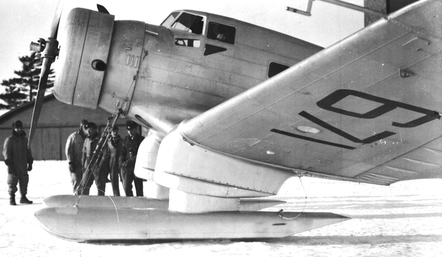 Northrop Delta Mk. II, RCAF (Serial No. 673) on skis, Apr 1939.