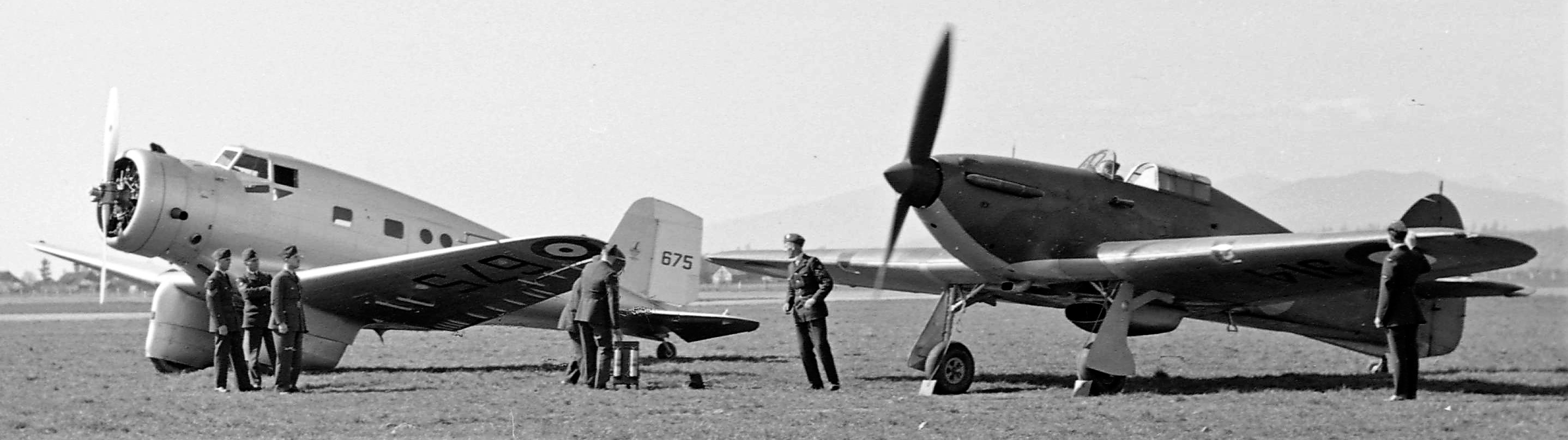 Canadian Vickers (Northrop) Delta Mk. I, RCAF (Serial No. 675), with a Hawker Hurricane, Vancouver, British Columbia, ca 1939.