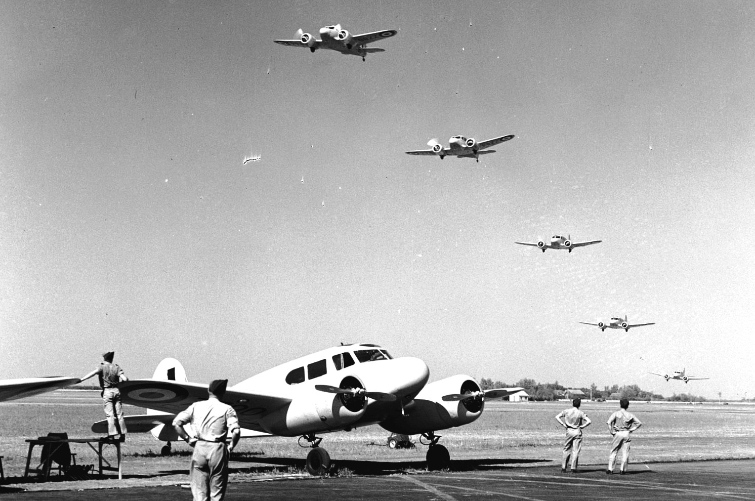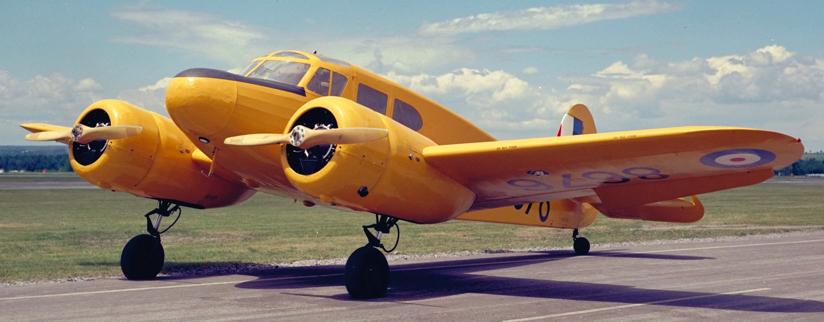 First flown in 1939, the American-built Cessna Crane was developed as a five-seat, light transport civilian aircraft. It was originally intended to serve only a minor role within the BCATP (an initial 180 were ordered in 1940) until the Canadian-built Avro Ansons became available in greater numbers. This was the first large order that Cessna had received for one of its products. Eventually, more than 5,400 Cranes would be produced, of which 826 saw service with the RCAF. Cessna Cranes were used primarily to teach future bomber pilots, after they had received their initial training, to fly multi-engined aircraft at Service Flying Training Schools in western Canada.