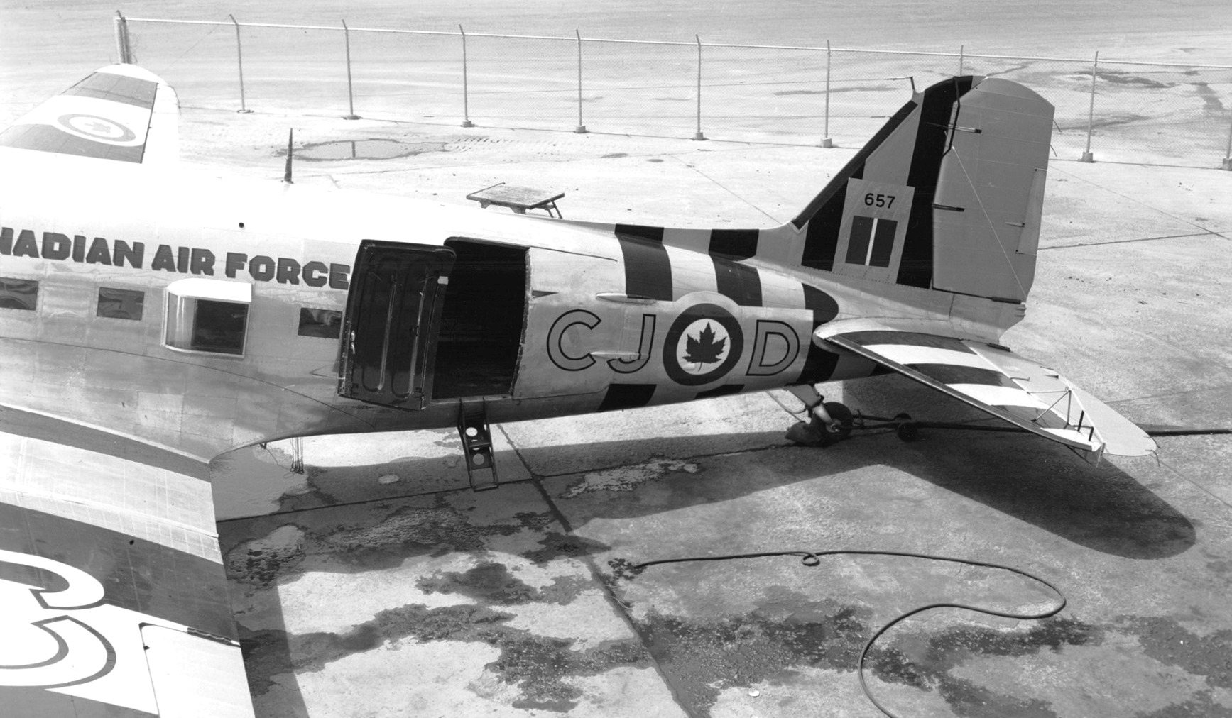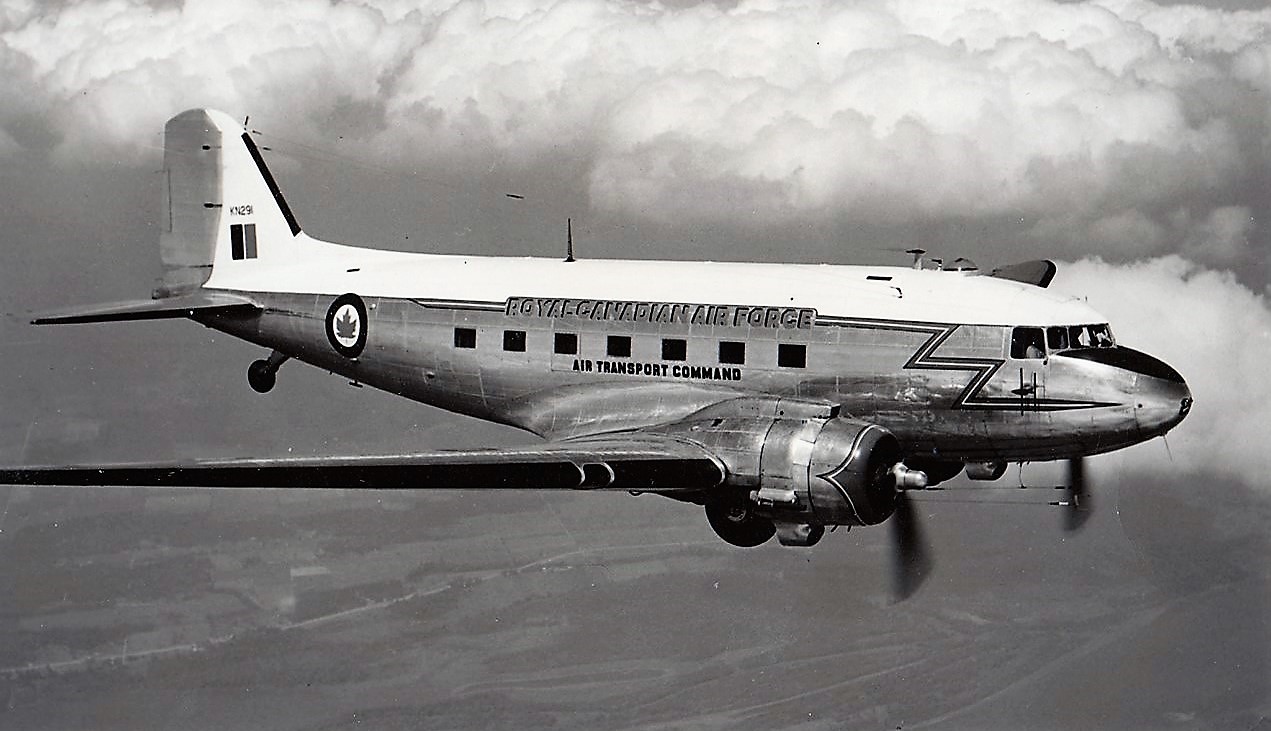During the Second World War, the Royal Air Force received about 1,930 Dakotas and they became the RAF’s main wartime transport aircraft. The RCAF took delivery of its first Dakota in March 1943, and at its peak had 169 on strength. Within Canada, they were operated by four transport squadrons and several ferry squadrons.