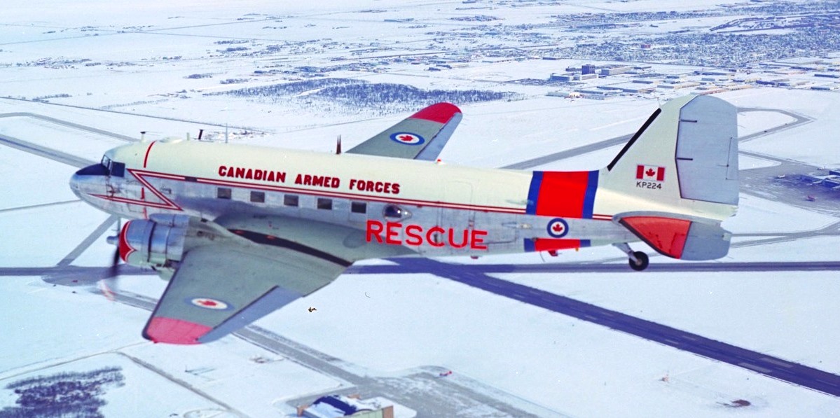 Douglas CC-129 Dakota (Serial No. KG580), later (Serial No. 12930), No. 440 Squadron, 1970. It has Canadian Armed Forces in French and “Rescue” is in english. This aircraft unfortunately crashed on 3 Nov 1971 in the Arctic, killing the 8 crew members. A case of low and slow and then stall that seems to repeat its self on SAR missions.