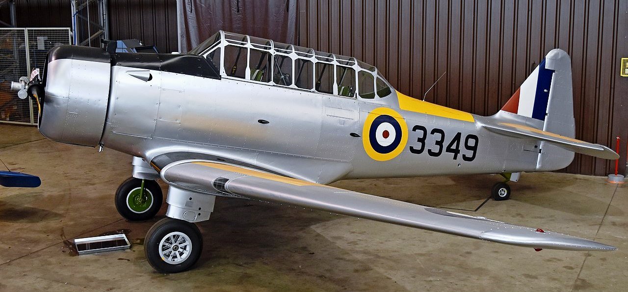 North American NA-64 Yale I, RCAF (Serial No. 3349), c/n 64-2171, built in 1940.  This Yale is privately owned and is shown here in its regular home of Hangar 2 (North) at the Imperial War Museum, Duxford, Cambridgeshire, UK.