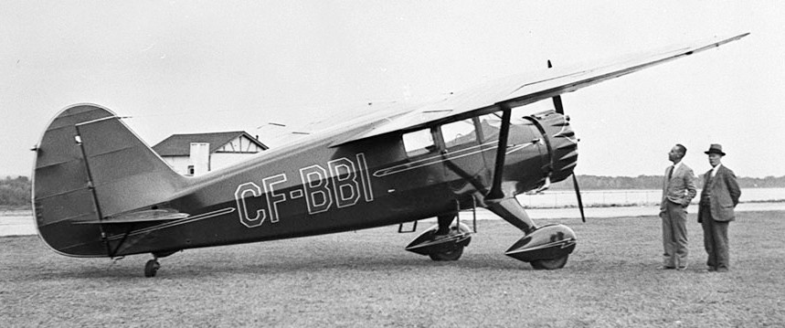 tinson SR-8C Reliant Reg. No. CF-BBI, of Canadian Colonial Airways Ltd., 1938.