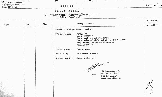 F/O Sweanor documented as a Navigator with the B-29 Detachment, Edmonton, Alberta.