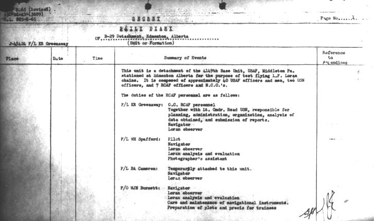 On 12 March 1948, the detachment’s name was changed to RCAF LF LORAN Flight Test Section and later was known as the B-29 Flight Test Section. Equipment tested included the AN/APM-52, AN/APM-53, LF LORAN AN/APM-9 (XA-3).