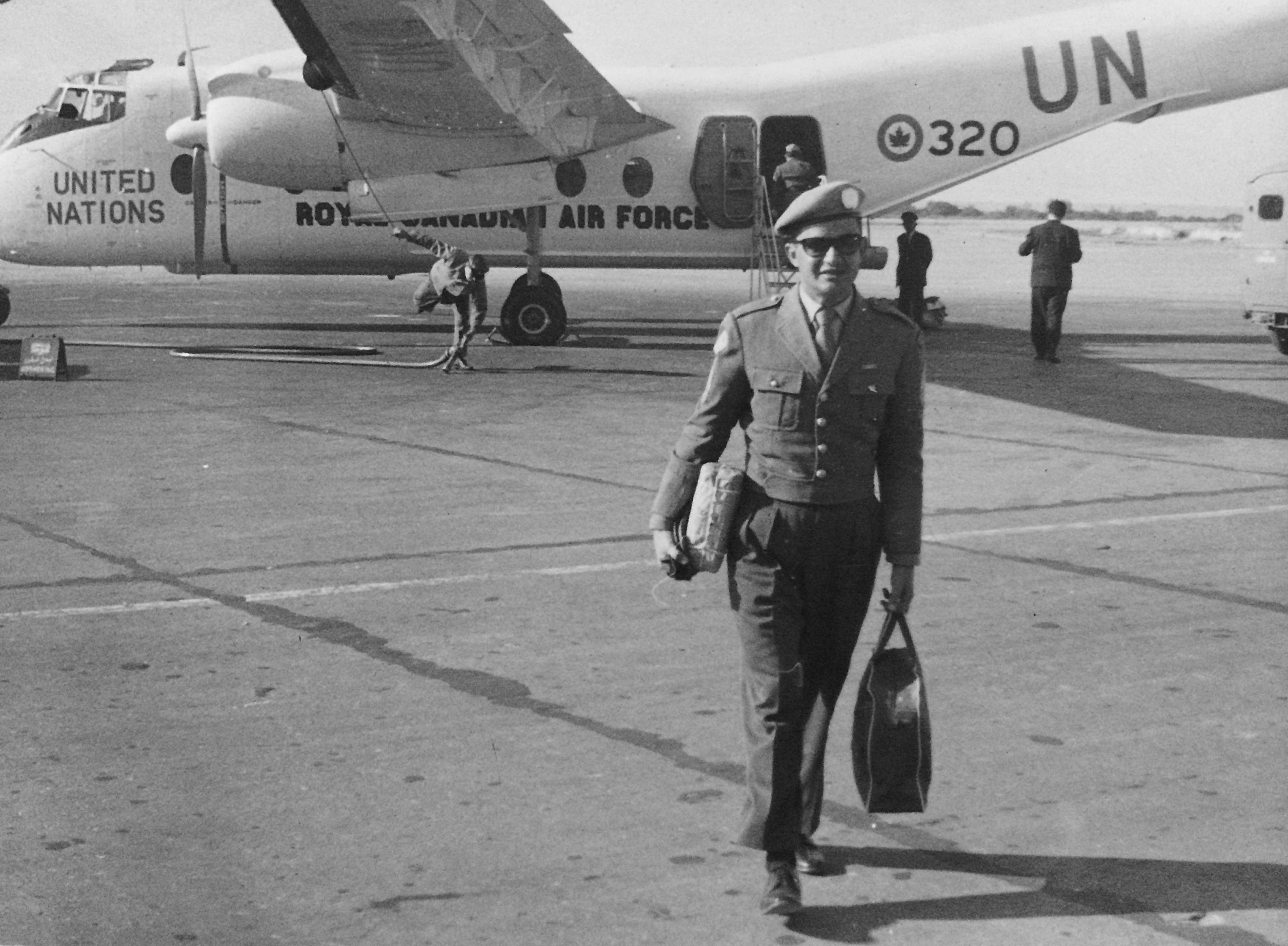 de Havilland CC-108 Caribou Mk. 1A (Serial No. 5320) in UN markings. This a photo from Rudnei showing his father, then 1st Sergeant Z. M. Cunha, from the Brazilian Contingent, UNEF 1952-1963, after deplaning from 5320.