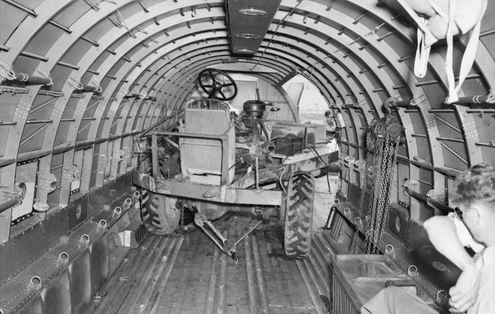 Douglas CC-129 Dakota with a Canadian Military Pattern (CMP) F8 or C8A or 8-cwt 1/2-ton truck being loaded, 14 Aug 1944.