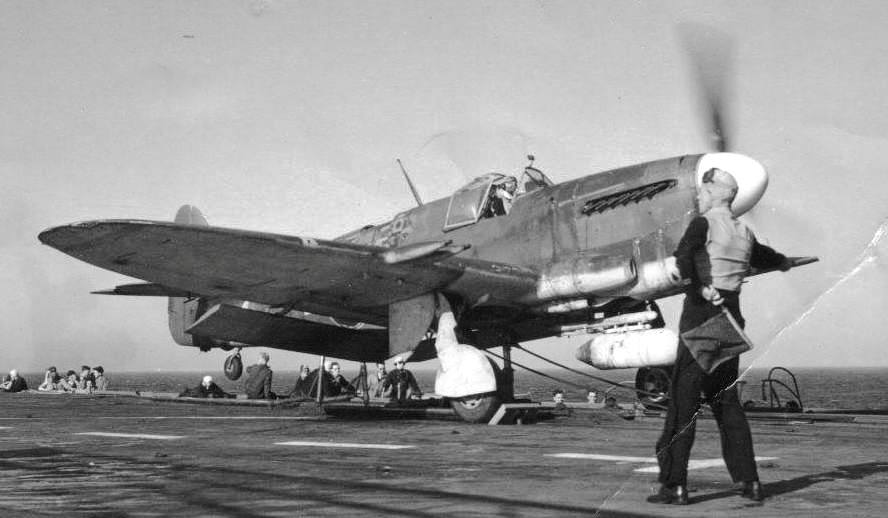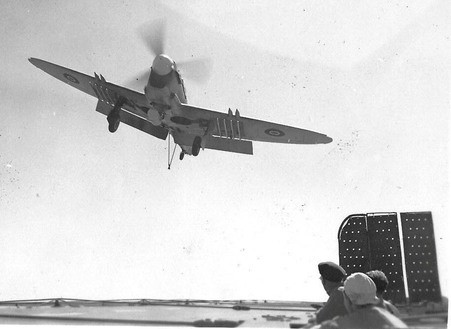 Fairey Firefly Mk. 1 landing, Royal Navy, ca 1944.