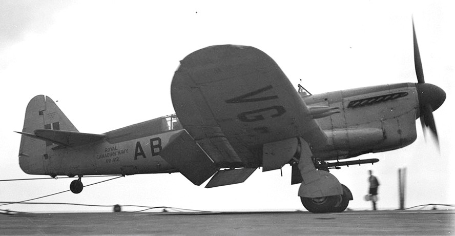 Fairey Firefly Mk. 1, (Serial No. PP412), landing on HMCS Magnificent, 17 November 1949.