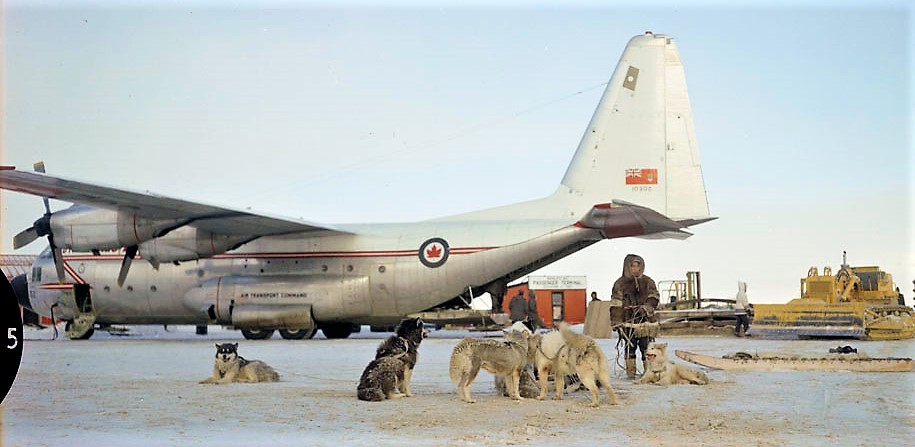 Lockheed CC-130B Hercules (Serial No. 10302), No. 435 Squadron, during Operation Re-supply at RCAF Detachment Resolute Bay, Northwest Territories, ca early 1960s. Ex USAF 60-5451. Delivered new to 435 (T) Squadron, RCAF Station Namao, Alberta, November 1960. Returned to Lockheed on 10 April 1967, to civil register as N4653 in July 1967, then to Columbian AF as FAC-1001 in January 1969. Withdrawn from use in July 1988. (CASPIR)