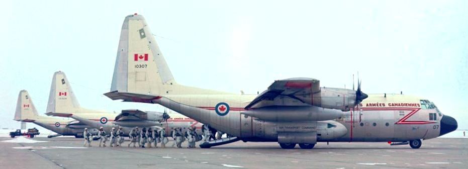 Lockheed CC-130E Hercules, (130307), with Canadian Airborne Regiment soldiers boarding.
