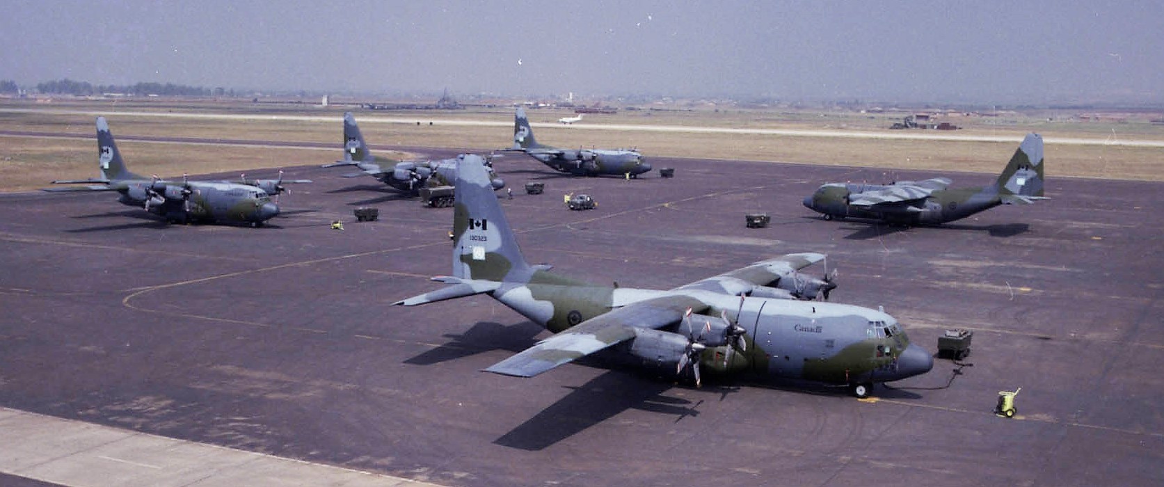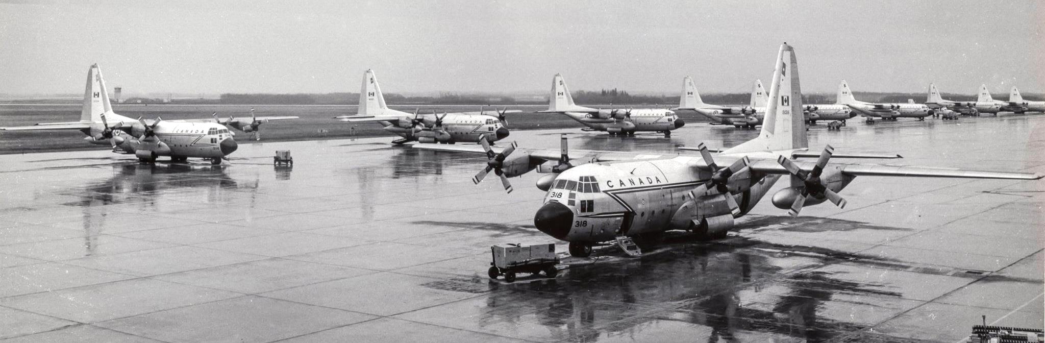 Lockheed CC-130E Hercules (23), (Serial Nos. 130305-130328), CC-130H (14), (Serial Nos. 130329-130342), CC-130H-30 (2), (Serial Nos. 130343-130344), CC-130NY, CC-130J (17), (Serial Nos. 130601-130617) for a total of 56 aircraft.