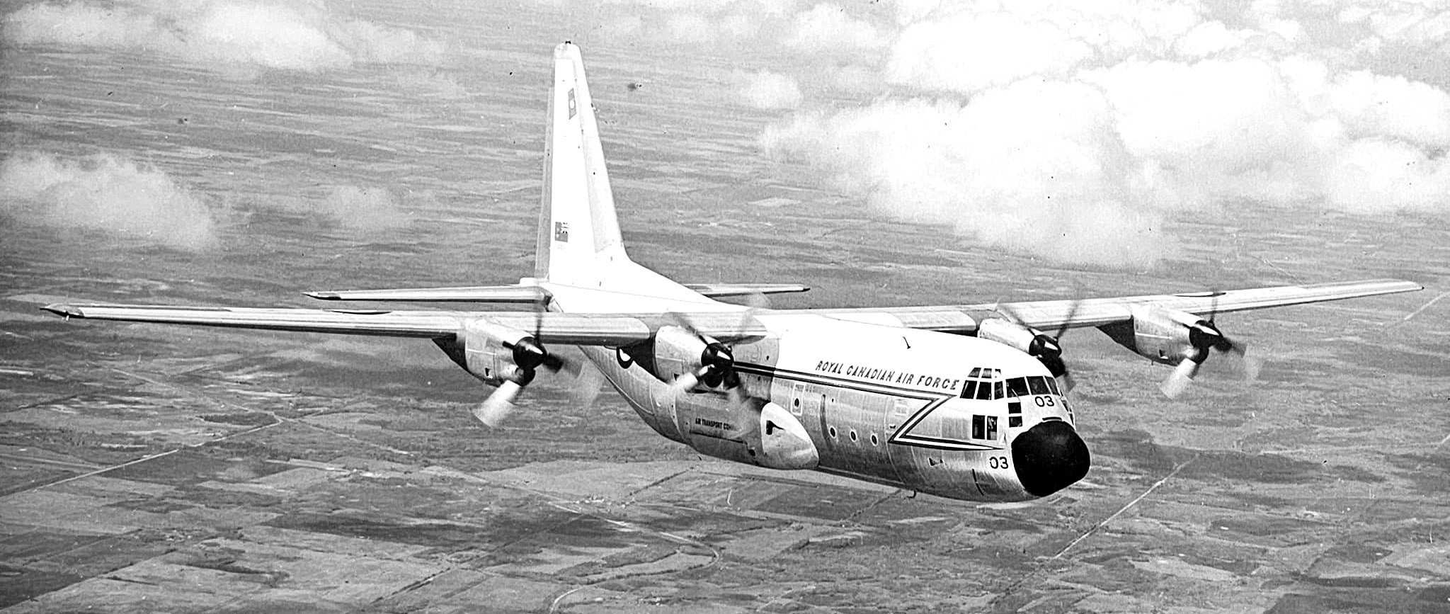 The RCAF had 4 “B” model Hercules aircraft 10301-10304. Here is one of them with the characteristic forward cargo door open. These doors caused some problems (10304’s door came open in flight and caused it to crash land in Saskatchewan). This cargo door was not in the subsequent “E” model Hercs of which Canada had some.