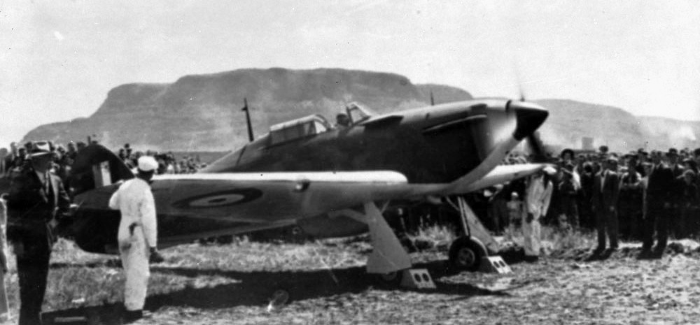 Canadian Car & Foundry (Hawker) Hurricane Mk. I, being run up after leaving the factory at Fort William (Thunder Bay), ca 1941.