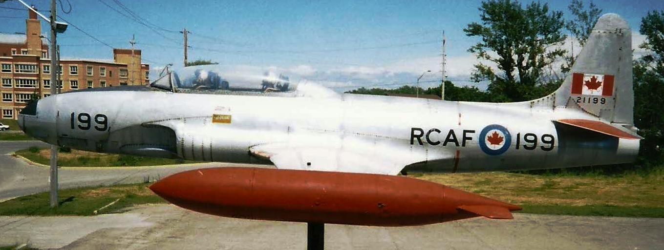 Canadair CT-133 Silver Star (Serial No. 133199), (Serial No. 21199), mounted on a pylon. Royal Canadian Legion Branch 63.