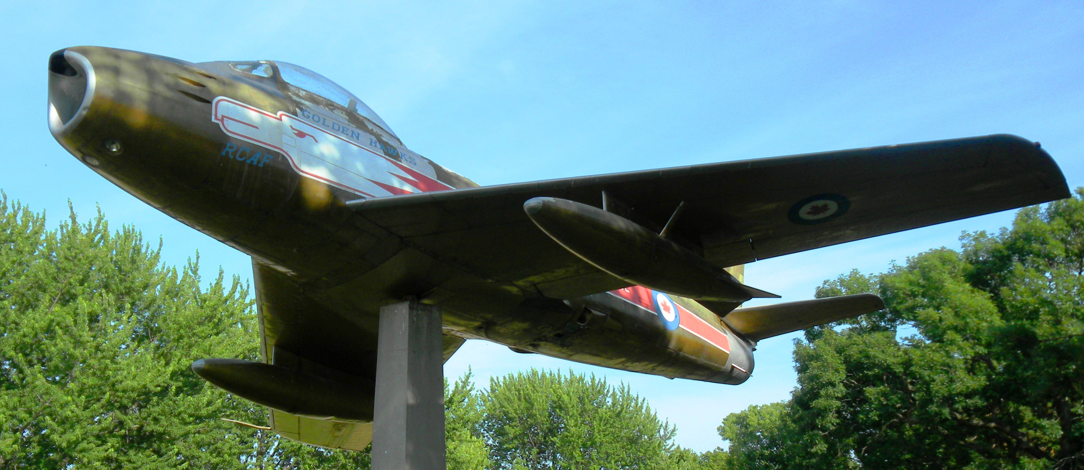 Canadair CL-13 Sabre Mk. 5 (Serial No. 23053), Golden Hawks, mounted on a pylon, Centennial Park, Zwick’s Island.
