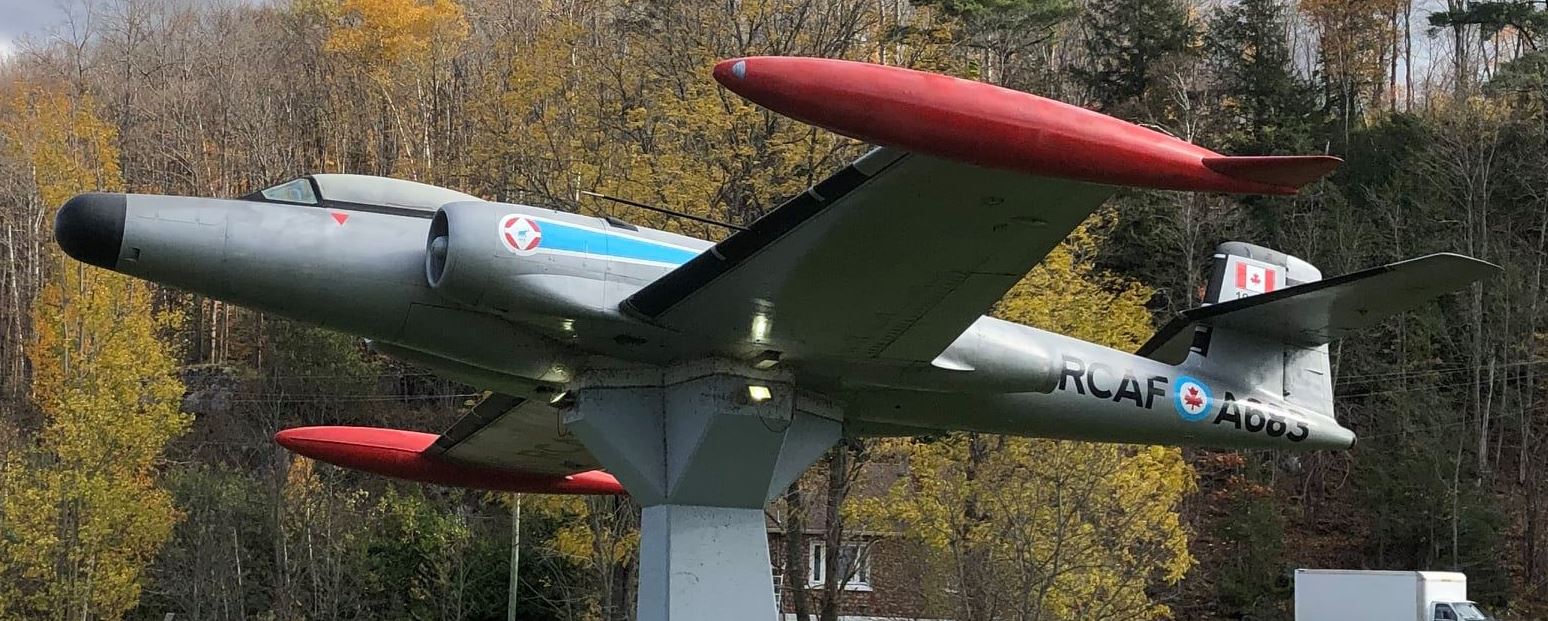 Avro CF-100 Canuck Mk. 5 (Serial No. 18602), A683, mounted on a pylon in a park near the Legion by the Algonquin Highway.