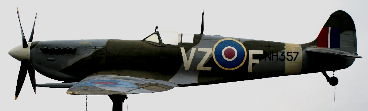Supermarine Spitfire Mk. IX (Serial No. NH357), VZ-F, replica, on display at the Spitfire Emporium.