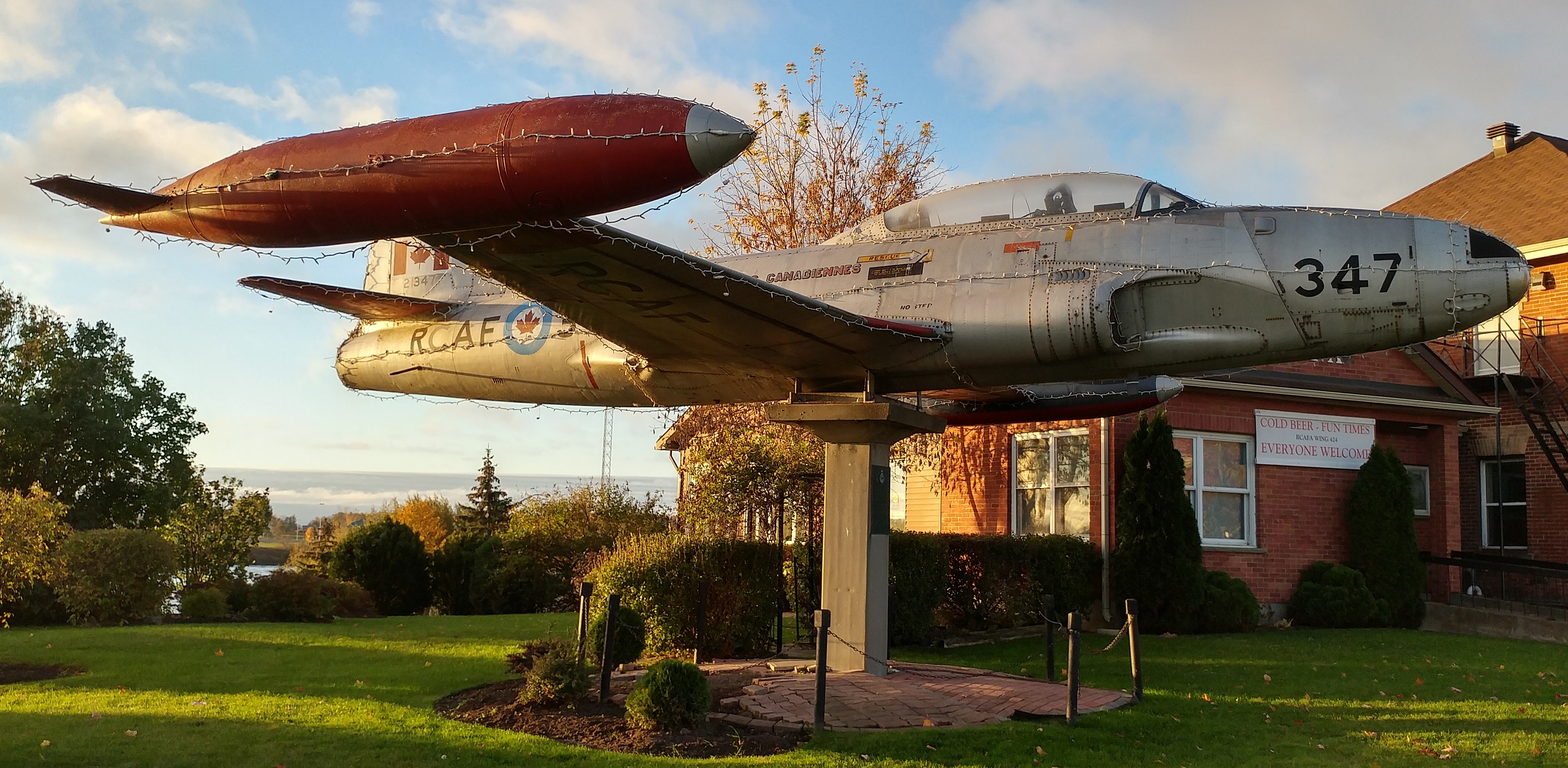 Canadair CT-133 Silver Star (Serial No. 133347), (Serial No. 21347), 347, silver, mounted on a pylon, RCAFA 424 Wing HQ.