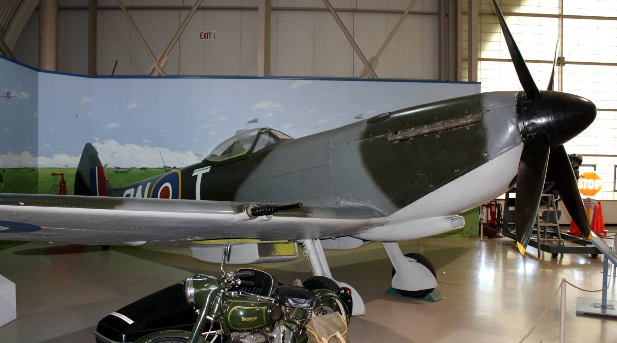 Supermarine Spitfire LF Mk. XVIe, RAF (Serial No. TE214), C/N CBAF IX 4424.  Built by Vickers at Castle Bromwich, in England in 1945, this aircraft was flown post-war with RAF No. 203 Advanced Flying School until it was damaged in an accident.  The British Air Ministry gave it to the RCAF in 1960, and they in turn transferred it to the Canada Aviation and Space Museum in 1966.  The Spitfire displays the markings of RCAF No. 416, “City of Oshawa” Squadron, one of eleven RCAF squadrons that fought over North West Europe in 1944-45.  This Spitfire is part of the Canada Aviation and Space Museum collection but is on long term loan to the Canadian Warplane Heritage Museum at Mount Hope.  This aircraft has been moved location TBC.  (CWHM)