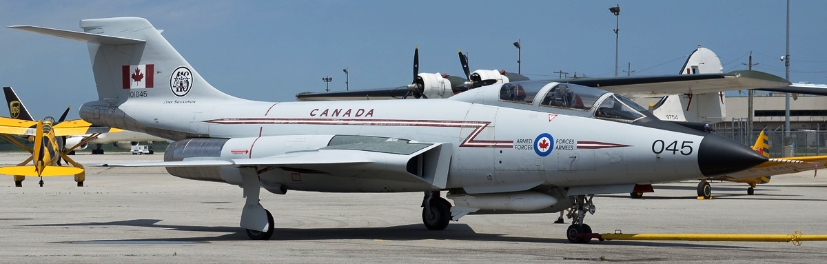 Canadair CF-116 Freedom Fighter (Serial No. 116757).  This aircraft was built by Canadair in Montreal in 1970.  After it was retired from the Canadian Forces in 1989, it was moved to the RCAF Memorial Museum in Trenton, Ontario. Canadian Warplane Heritage Museum acquired the aircraft from the Department of National Defence in 1996.  (CWHM)
