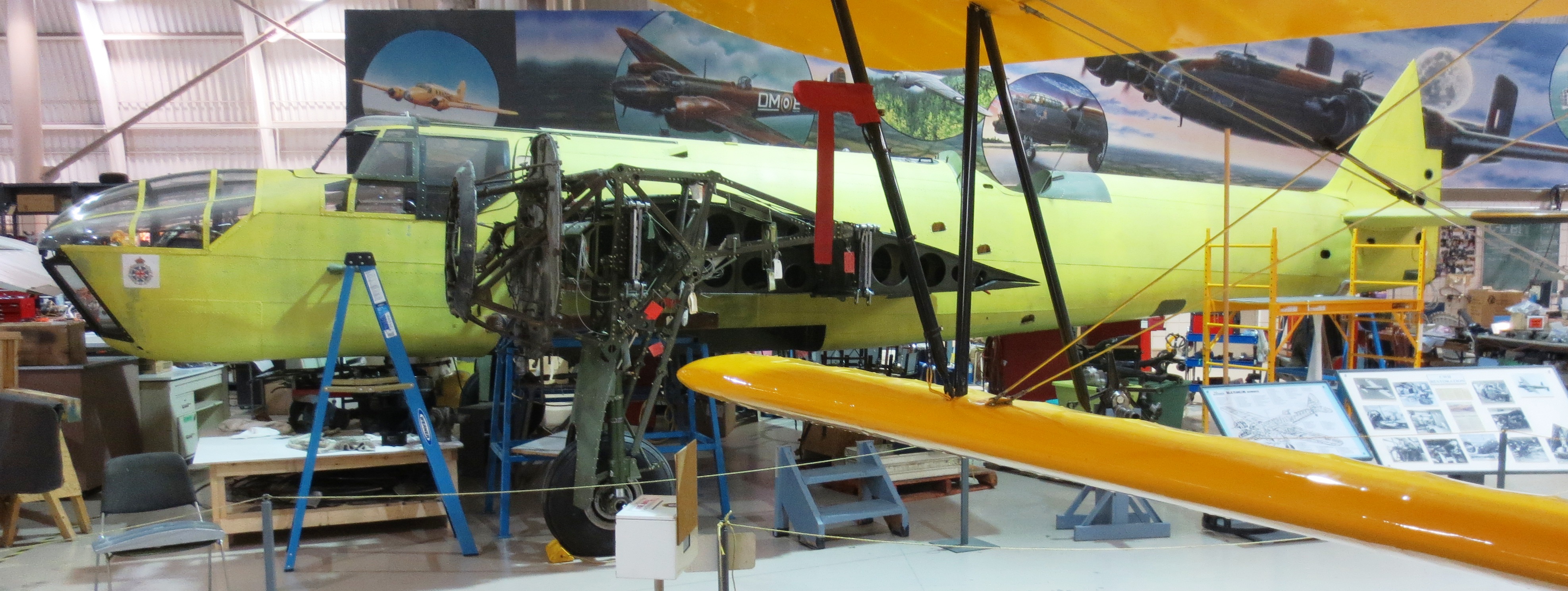 Bristol (Fairchild) Bolingbroke Mk. IVT, RCAF (Serial No. 10117), to be painted as RCAF (Serial No. 714), No. 119 Squadron, Reg. No. C-GBLY.   This aircraft is being rebuilt from the remains of eight aircraft salvaged from Manitoba in the mid 1980s.  When the restoration is complete, the aircraft will be painted in the colours and markings of RCAF No. 119 “City of Hamilton” Squadron.  Some of the parts for this aircraft came from (Serial No. 9949), (Serial No. 10040), and (Serial No. 10117).  626 Bristol Bolingbrokes were manufactured in Canada between 1939 and 1943.   (CWHM)