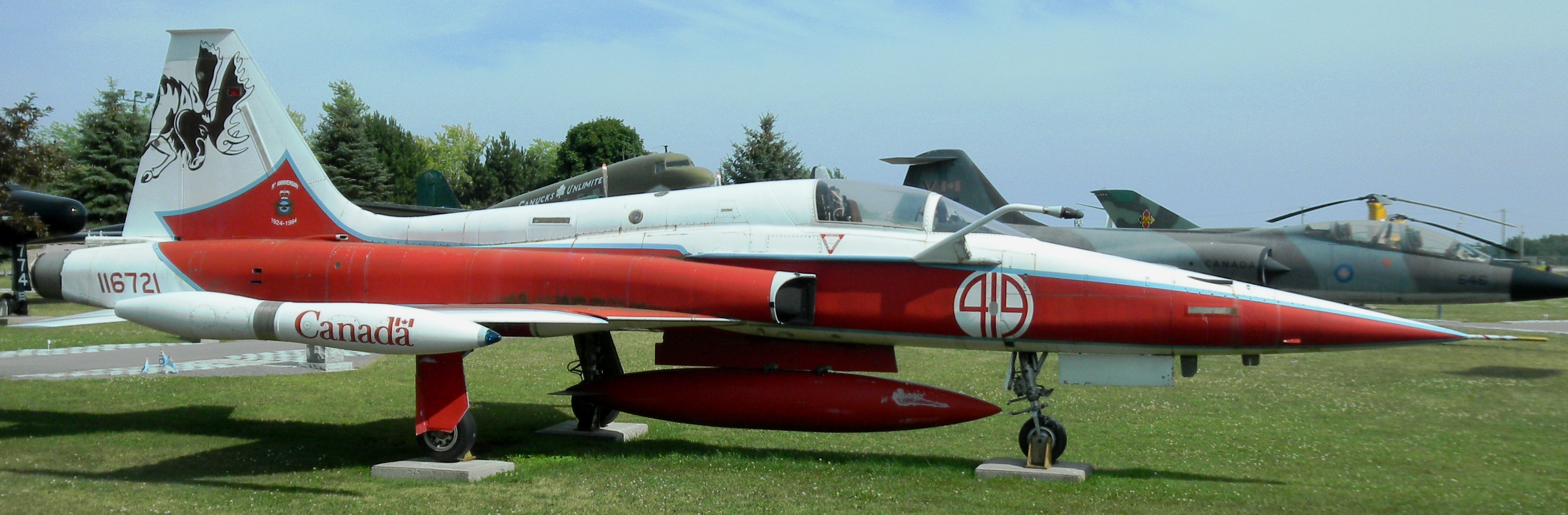 Canadair CF-116 Freedom Fighter (Serial No. 116721). The museum’s Freedom Fighter initially served as a tactical fighter and trainer for No. 434 Squadron in Cold Lake, Alberta. In 1976, it was transferred to No. 419 ‘Moose’ Squadron, where it was used primarily for training. The paint scheme for 116721 commemorates the history of ‘Moose’ Squadron and the colours of our national flag. (NAFMC)
