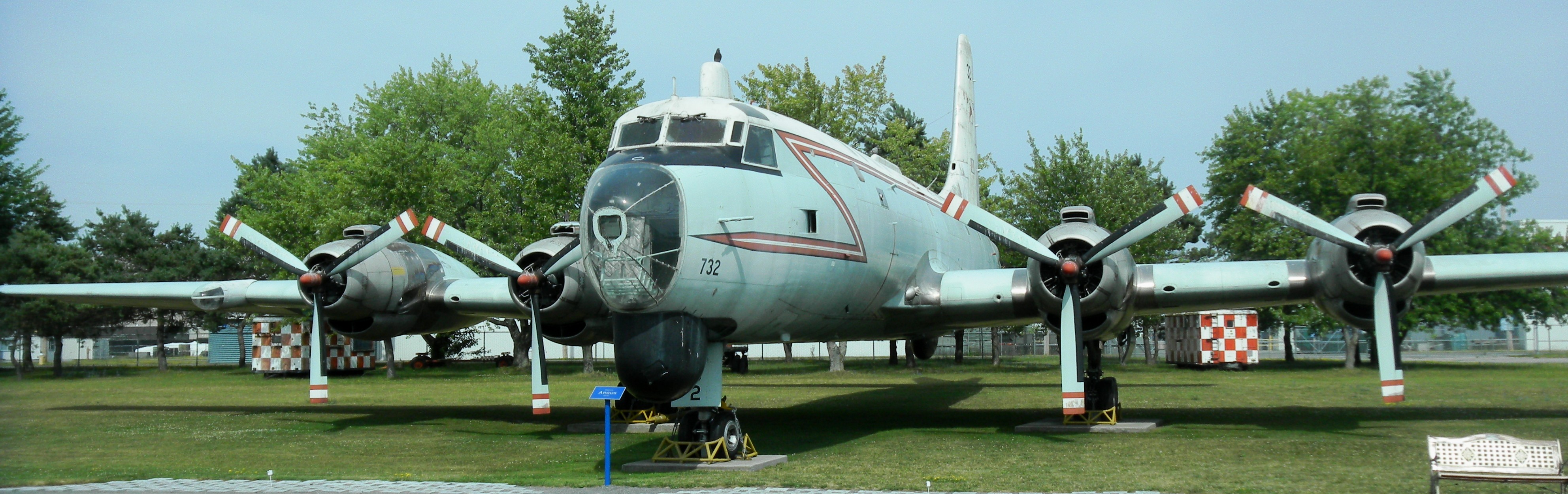 Canadair CP-107 Argus Mk. 2 (Serial No. 10732), 783C. The museum’s Argus was one of twenty purchased by the RCAF in 1958. The Argus normally flew with a crew of 3 pilots, 2 flight engineers, 3 navigators and 7 radio officers. It flew with No. 415 Maritime Patrol ‘Swordfish’ Squadron at CFB Summerside, Prince Edward Island, until 1981, (thus the swordfish markings on the tail of the aircraft). The Argus was replaced by the Lockheed CP-140 Aurora patrol aircraft when No. 415 Squadron was moved to CFB Greenwood, Nova Scotia. This Argus was stored at Mountainview, Ontario, and painted at CFB Trenton before it was brought to the museum. (NAFMC)