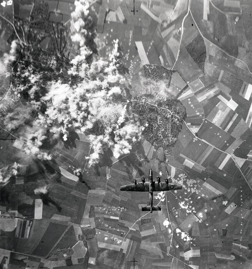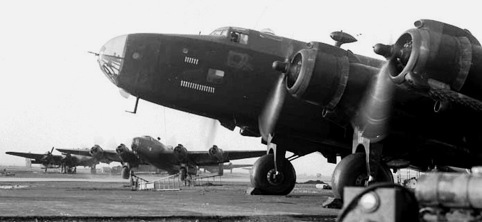 Handley Page Halifax on a daylight bombing raid over Europe ca 1945.