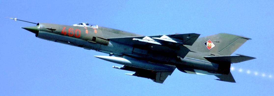 MiG-21MF Fishbved-J, No. 460, of Jagdfliegergeschwader 1 (JG-1) taking off from Holzdorf, Germany, in August 1990.