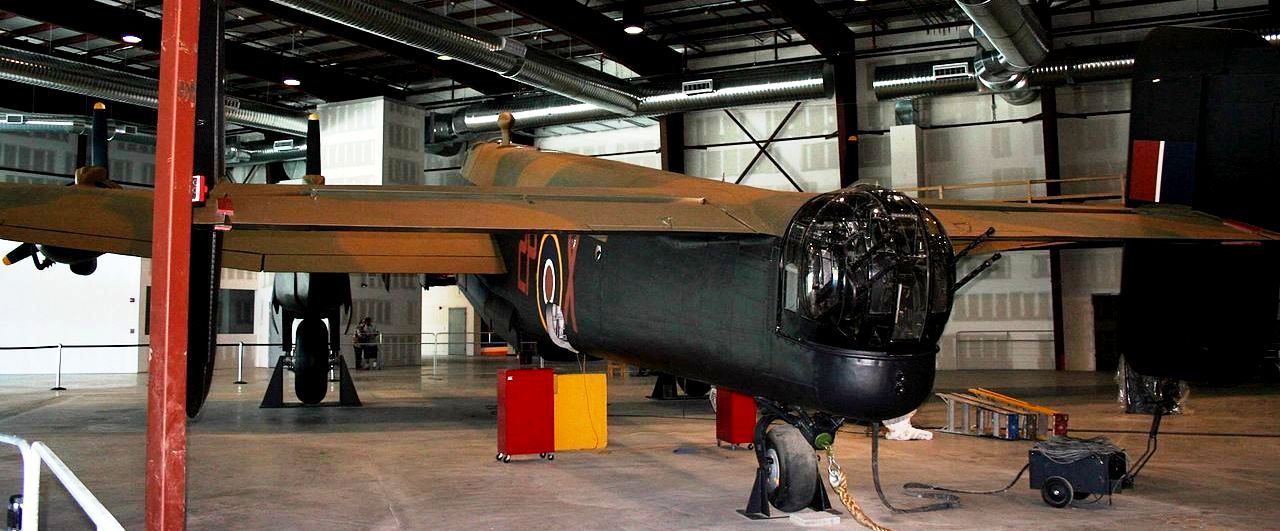 Handley Page HP 57 Halifax Mk. VII (Serial No. NA337). This aircraft was a Special Duties aircraft built by Rootes Motors, at Liverpool Airport. NA337 flew with No. 644 Squadron RAF, then based at RAF Tarrant Rushton, and was shot down in April 1945. It was retrieved from the bottom of Lake Mjøsa in Norway in 1995, and taken to Canada where restoration was completed at CFB Trenton in 2005.