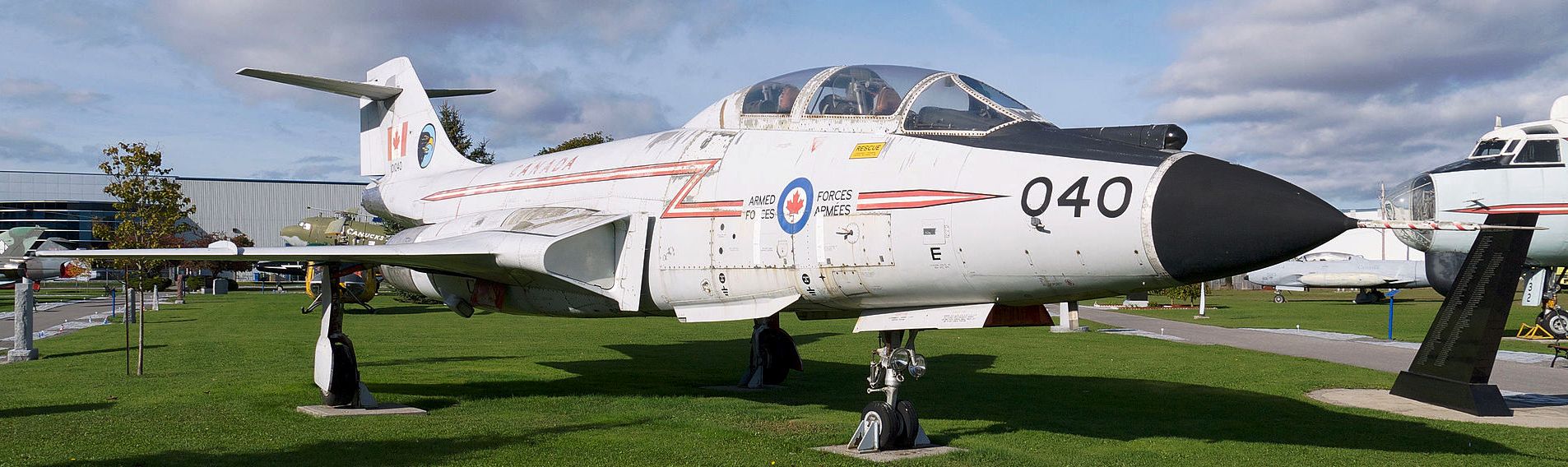 McDonnell CF-101B Voodoo (Serial No. 101040), USAF (Serial No. 57-0373). The RCAF purchased Voodoo 101040 from the United States Air Force in 1971. The aircraft flew with No. 409 ‘Nighthawk’ Squadron, an air defence unit located in Comox, British Columbia, (thus the hawk image located on the tail). It also flew with No. 416 Squadron in CFB Chatham, New Brunswick, which became the last unit in the world to fly the Voodoo. (NAFMC)