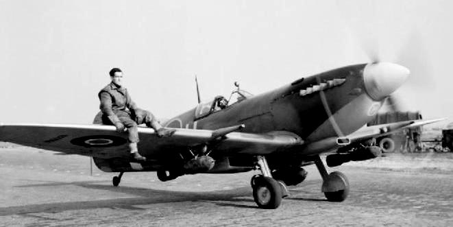 Supermarine Spitfire Mk. IXE, RCAF No. 412 Squadron, loaded with 250-lb GP bombs, Volkel, Holland, 27 October 1944.