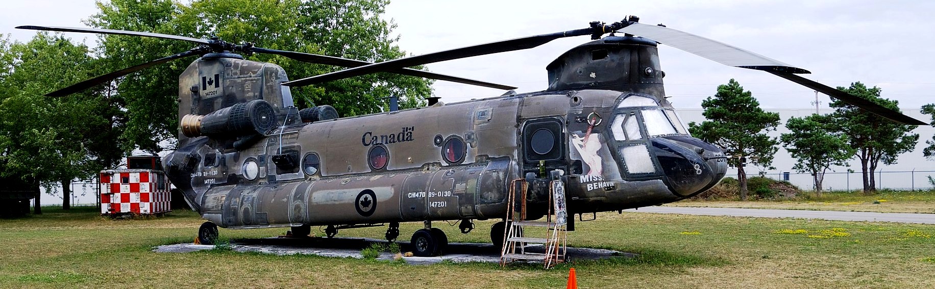 Boeing-Vertol CH-147D Chinook (Serial No. 147201) “Miss Behavin“. This helicopter was originally built as a CH-47C, US Army (Serial No. 68-16017), c/n B.609. It was converted to a CH-47D, new (Serial No. 89-00130), c/n M.3284. The helicopter was over 39 years old when it was supplied to the Canadian Forces. It was purchased second-hand from the US Army for use by Canadian Forces Joint Task Force Afghanistan Air Wing at Kandahar, Afghanistan.