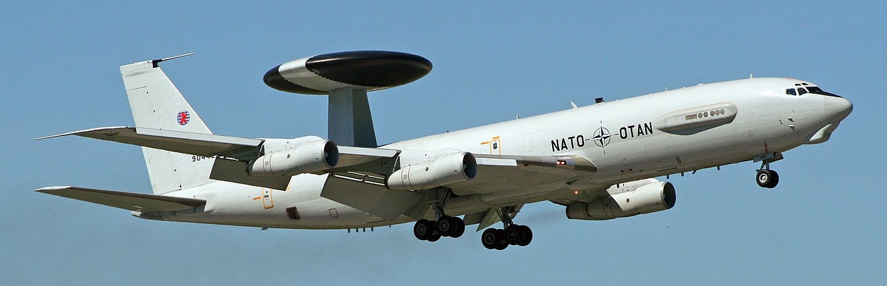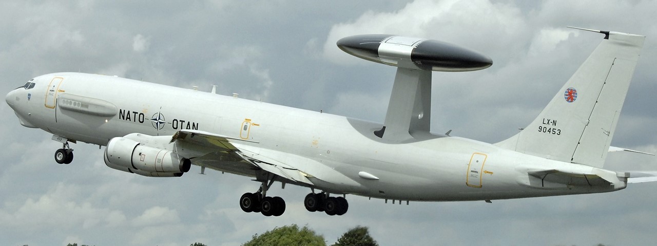 NATO acquired 18 E-3As and support equipment, with the first aircraft delivered in January 1982.[38] The aircraft are registered in Luxembourg. The eighteen E-3s were operated by Number 1, 2 and 3 Squadrons of NATO’s E-3 Component, based at NATO Air Base Geilenkirchen. NATO E-3s participated in Operation Eagle Assist after the September 11 attacks on the World Trade Center towers and the Pentagon. NATO and RAF E-3s participated in the military intervention in Libya. Presently, 16 NATO E-3As are in the inventory, since one E-3 was lost in a crash and one was retired from service in 2015. (Wikipedia)