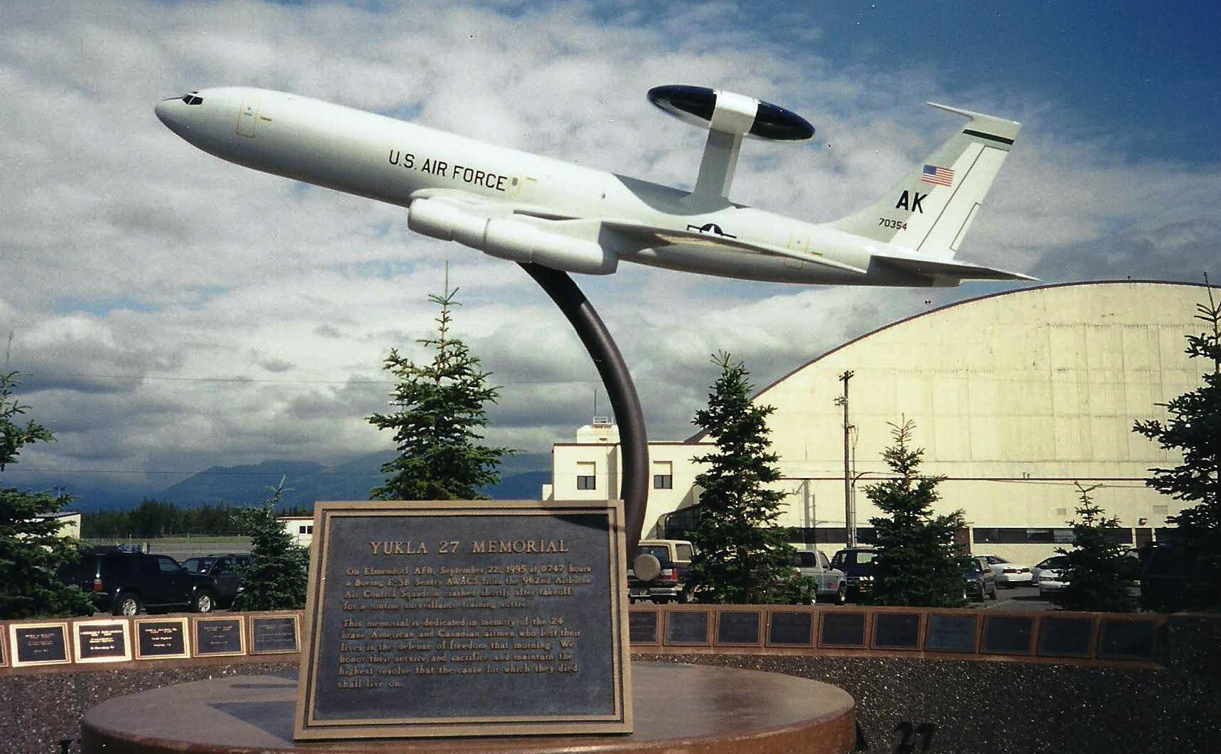 On 22 September 1995, the United States Air Force and the Canadian Forces lost 24 of their finest people with the catastrophic accident of a Boeing E-3 Sentry Airborne Warning and Control System (AWACS) aircraft. This aircraft was better known within the Elmendorf and Anchorage communities by its call sign “Yukla 27”. The aircraft crashed soon after takeoff from Elmendorf AFB, Alaska. It was the first crash of an American E-3. The aircraft went down at about 07:45 a.m. in a heavily wooded area about two miles northeast of the runway. The AWACs was headed out on a seven-hour surveillance training mission.
