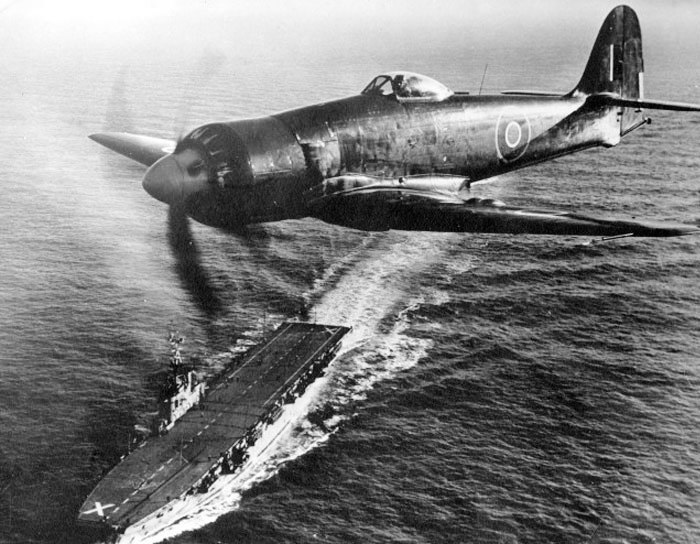 Hawker Sea Fury FB Mk. 11 RCN, over HMCS Magnificent.