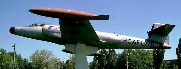 Avro CF-100 Canuck Mk. 2T, RCAF (Serial No. 18104), CF (Serial No. A611). First CF-100 formally accepted by the RCAF. Pre-production coded VC-FBF, 1951 : CEPE as “FB-F“. used as a ground trainer CF (Serial No. A611), 4/28/1955 : Withdrawn from use, struck off charge 11/6/1974. Currently preserved on a pedestal next to Saint-Jean-sur-Richelieu Airport (CYJN), Québec.