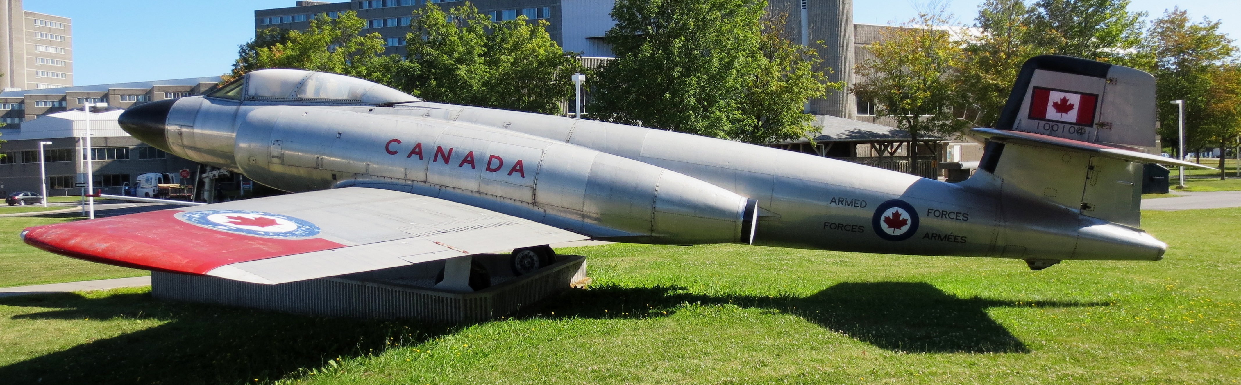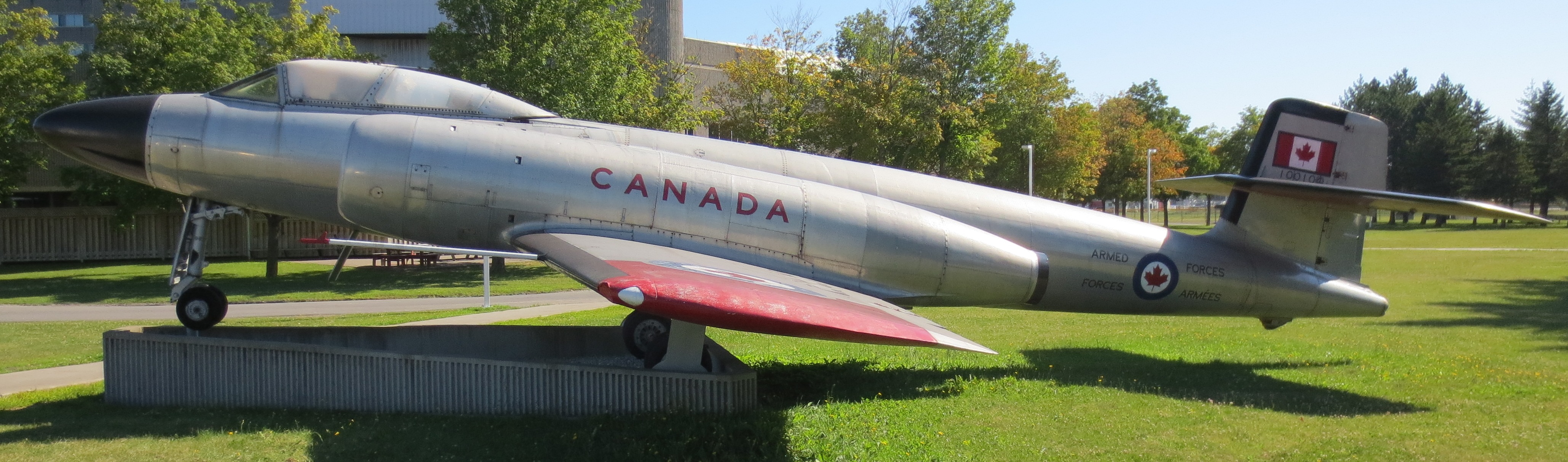 Avro CF-100 Canuck Mk. 5D, RCAF (Serial No. 18746), CF (Serial No. A611), East of the parade square, Royal Military College Saint-Jean, Saint-Jean-sur-Richelieu, Québec.