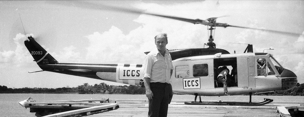 For reasons of distance and for reasons of safety, in a time of conflict, the ICCS often traveled by air. Requiring pilots experienced at flying over mountain and jungle, and men accustomed to the unpredictable military background of the region, the ICCS gave a contract to a locally well-established operation, Air America. Initially under the command of Colonel J. A. Mitchell, of Canada, this organization gave a coat of white paint to its aircraft and panels indicating ‘ICCS’, to operate as: ICCS Air Services. Captain Charles Laviolette (-1973), 12e Régiment blindé du Canada ICCS Canada, was the only Canadian fatality with the ICCS, though others were lost with the ICC.