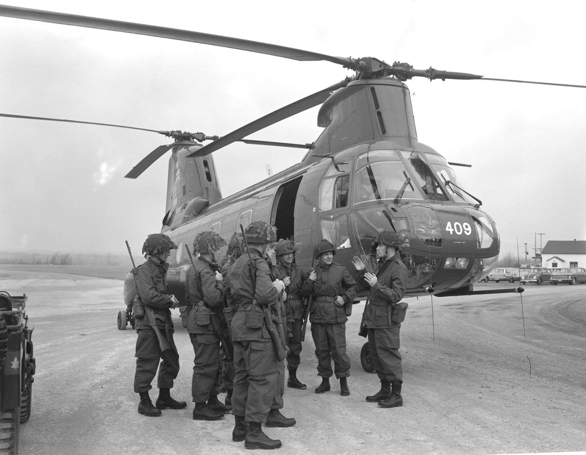 Boeing Vertol CH-113A Voyageur Helicopter (Serial No. 10409), later (Serial No. 11309), Canadian Army, Rockcliffe, Ontario, ca 1965. This Voyageur was taken on strength in 1964 and was flown by No. 1 Transport Helicopter Platoon, a component of the Canadian Army and part of the Royal Canadian Army Service Corps, based at CJATC, Rivers, Manitoba.  It was destroyed in a crash fter control was lost when entering a fog bank at Kinchloe AFB, Michigan, while on a ferry flight from Rivers, Manitoba to the unit’s new base at St. Hubert, Quebec, on 14 August 1966.