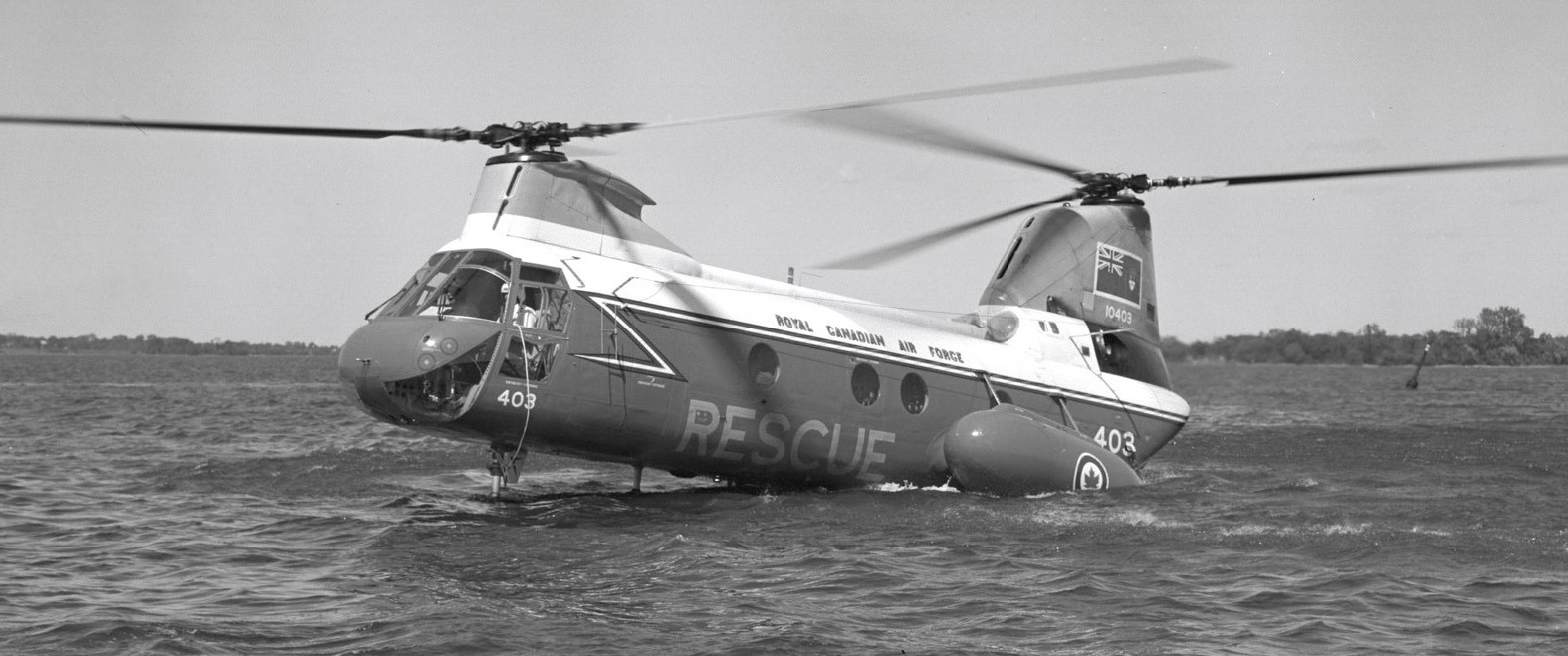 Boeing Vertol CH-113 Labrador (Serial No. 11304), No. 103 Squadron, on Gander Lake, Newfoundland, 1997.  No. 103 Search and Rescue Flight was formed in 1947 and it became a Squadron in 1997.