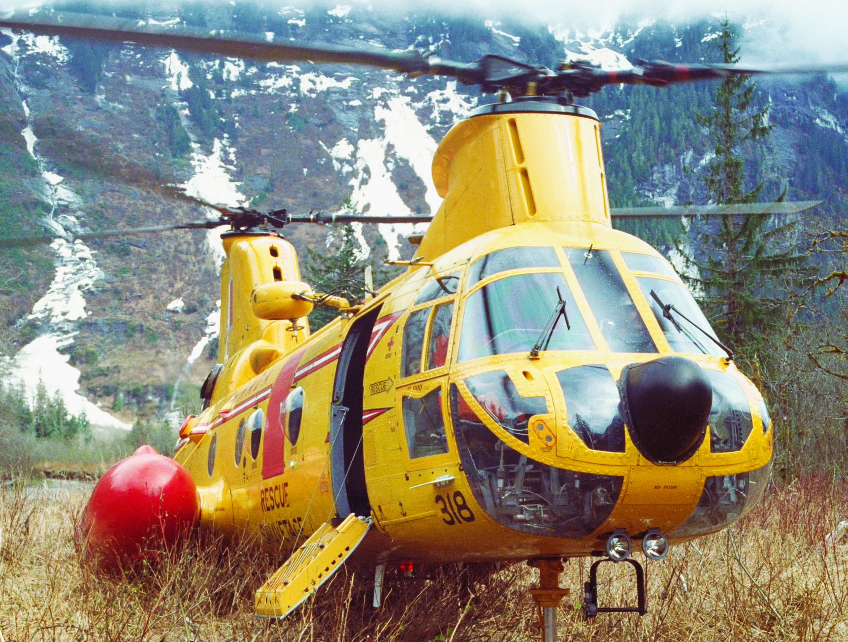 Boeing Vertol CH-113A Voyageur Helicopter (Serial No. 11318), running on the ground in British Columbia, 1991.