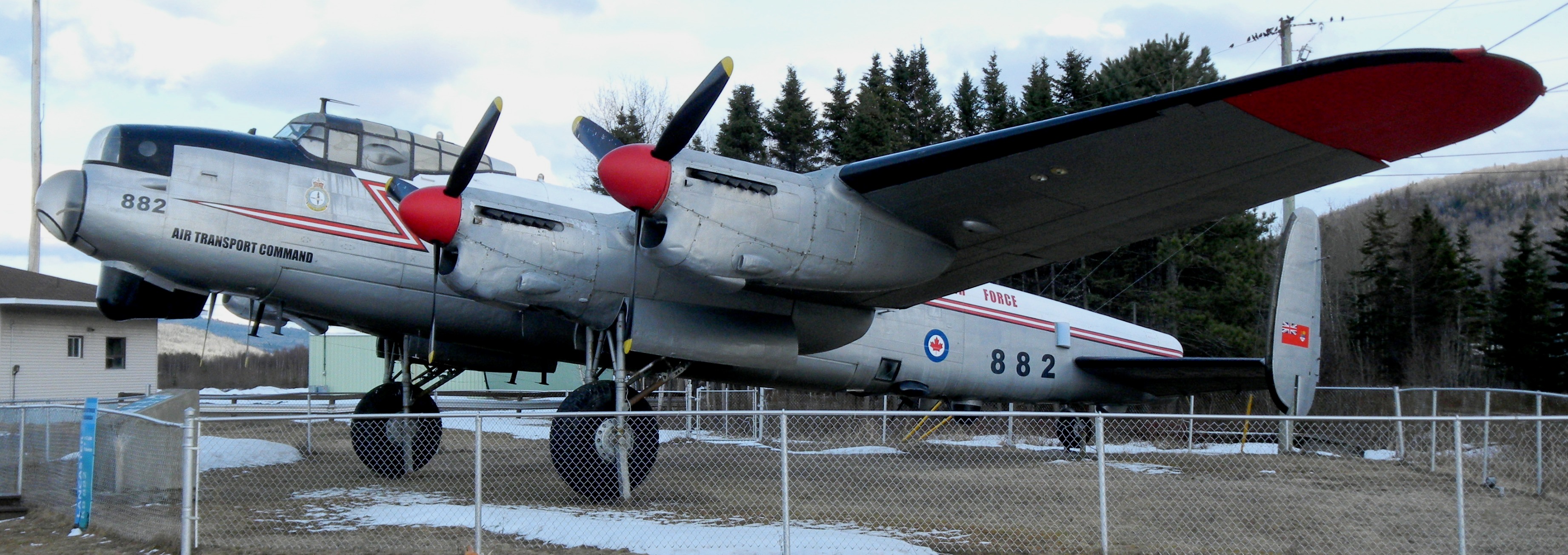 On 1 May 1964, the Crown Assets Disposal Corporation accepted a monetary offer from the City of Edmundston, New Brunswick, for the purchase of the aircraft.  Shortly afterwards it was flown from DND No. 6 Repair Depot, Trenton, Ontario to Fredericton,  where it waited for the Edmundston site to be completed.  On 14 July 1964, Captain Joseph (Pepi) DiGiacinto, pilot; Flight Sgt Derek Miller, co-pilot; Gerry Flemming, radio operator; Captain Keith Wyatt, navigator and flight Engineer, Jim Cochrane brought KB882 in on her final flight.  The crew touched down at the Edmundston Municipal Airport where she was mounted on a hardstand at St Jacques Airport in its last operational colours, (for a short while KB882 had been painted in wartime camouflage, coded NA-R “Rabbit Stew“.