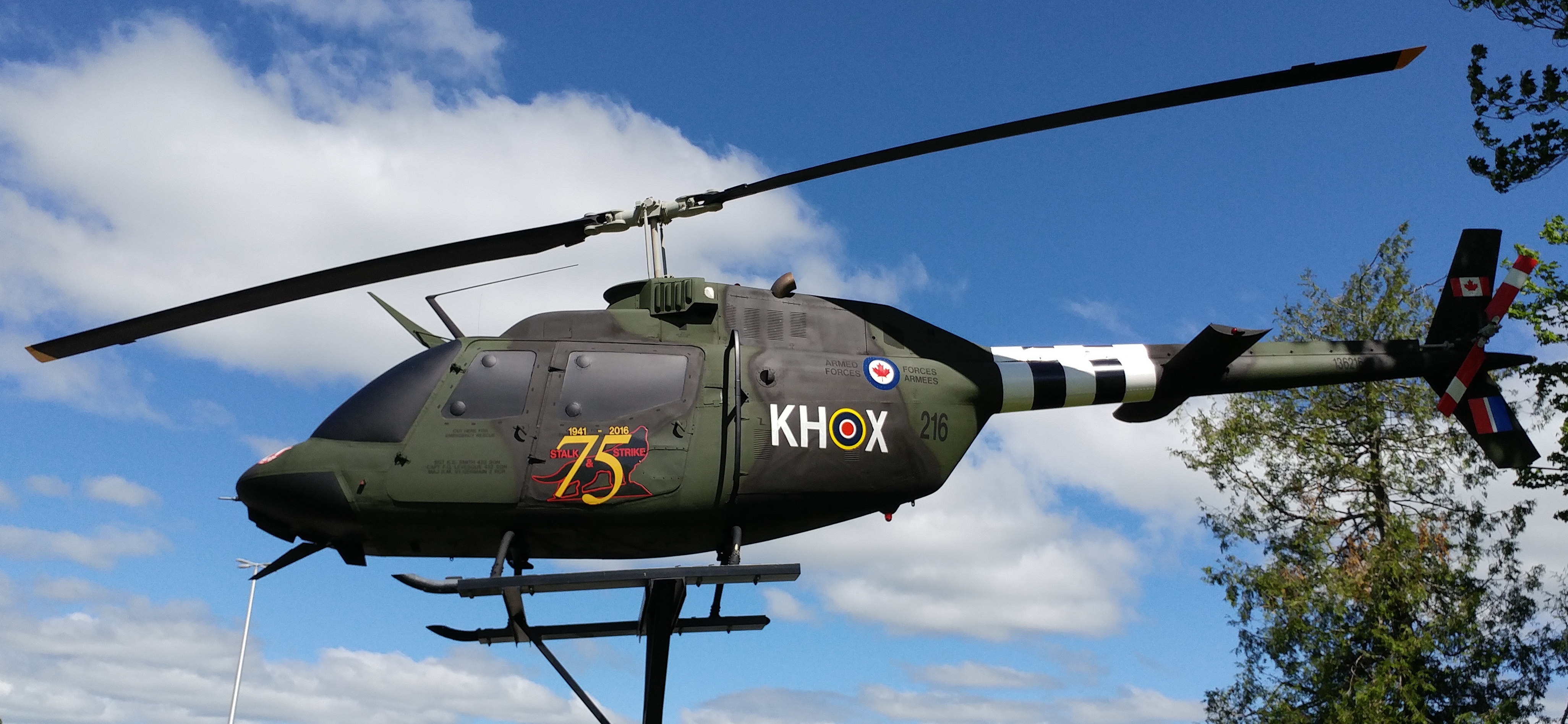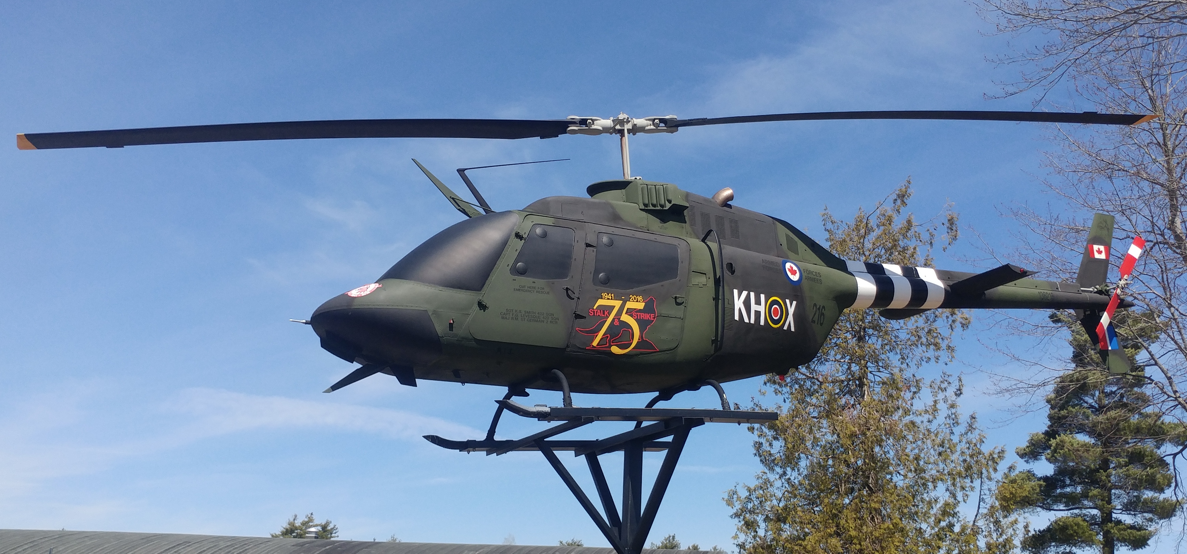 Bell CH-136 Kiowa Helicopter (Serial No. 136216), mounted on a pylon, 403 Helicopter Operational Training Squadron.
