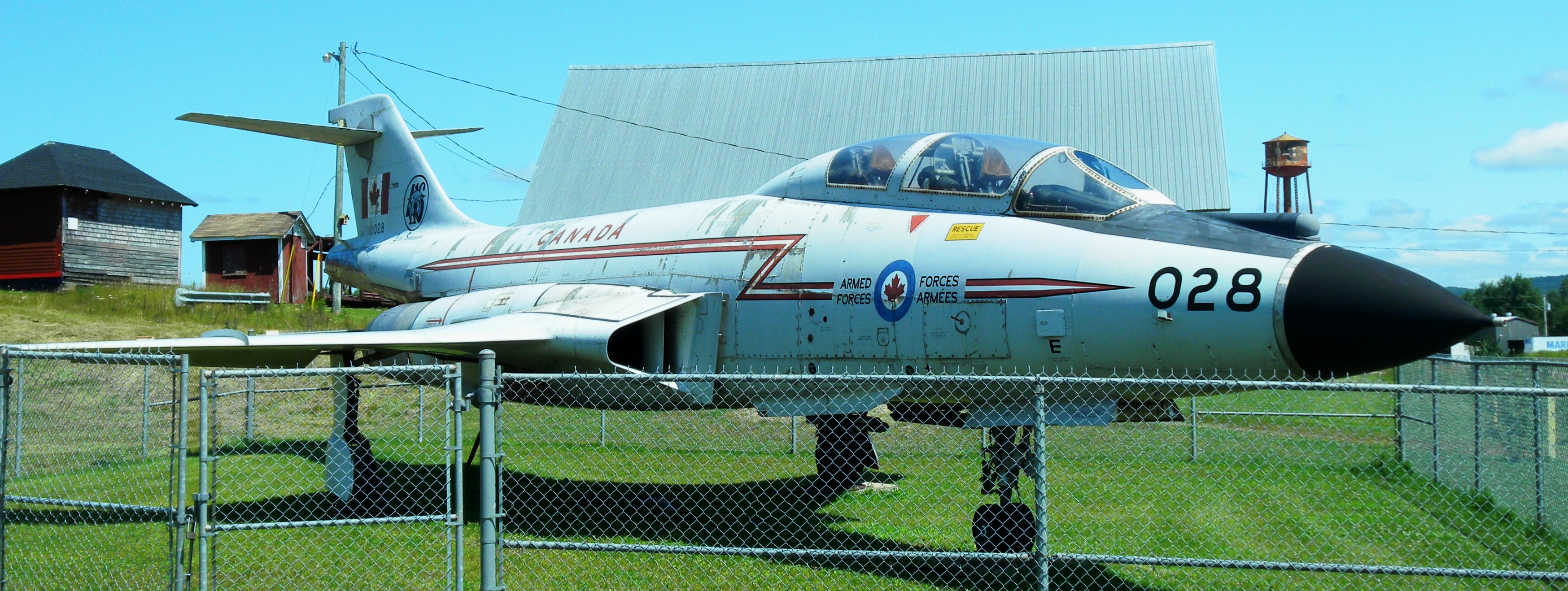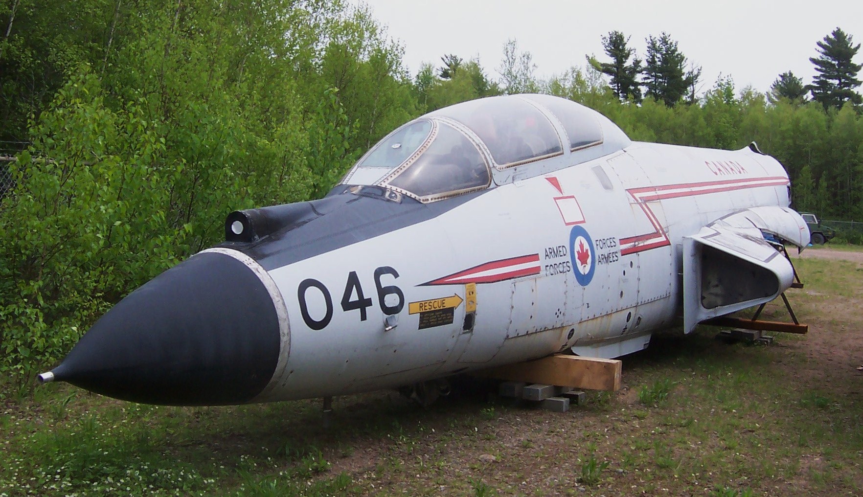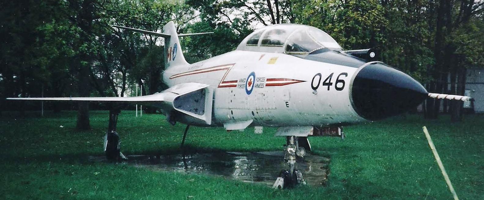 McDonnell CF-101B Voodoo (Serial No. 101046), ex-USAF F-101B-95-MC (Serial No. 57-0384).  This aircraft flew with No. 416 Squadron from 1975 to 1982.  On May 1983 it became Instructional Airframe 817B.  It was struck off strength on 12 Feb 1990.  It came to 5 CDSB Gagetown in 2011.