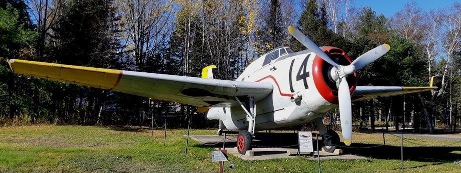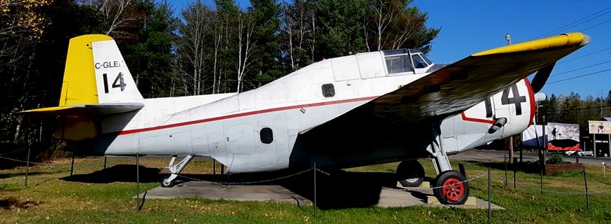 General Motors (Grumman) TBM-3 Avenger (BuNo. 85733), Reg. No. C-GLEK, Forest Protection Ltd, Aircraft No. 14, on display at the Central New Brunswick Woodsmen’s Museum, a Canadian forestry museum located in Boiestown, New Brunswick. The museum is located on a 15-acre site alongside Highway 8 and the Southwest Miramichi River.