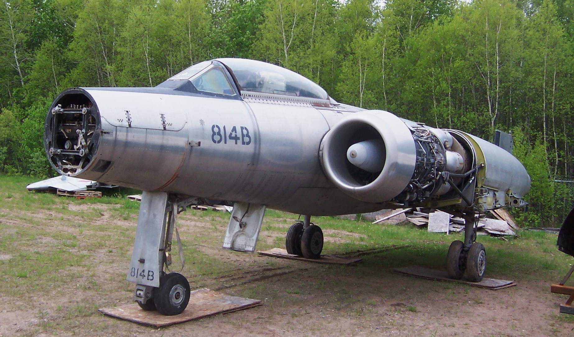 Avro CF-100 Canuck Mk. 5 (Serial No. 18773), in service from 1958 or 1959, renumbered (Serial No. 100773).  This aircraft served with No. 416 and No. 425 Squadrons out of Bagotville, Quebec.  It was taken on strength by the Canadian Armed Forces on 1 Feb 1968 as Instructional Airframe as (Serial No. 814B).   It went into storage at CFD Mountainview, Ontario in 1980, still carrying its RCAF serial number.  It had 966 hours airframe time when stored on 12 Feb 1990.  It was preserved at CFB Trenton, Ontario, until coming to 5 CDSB Gagetown in 2011.